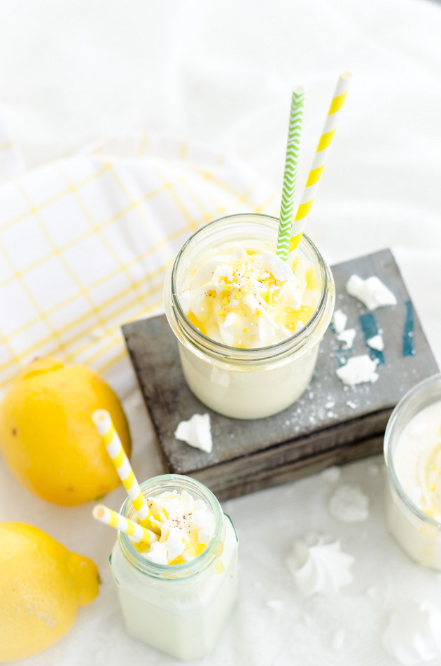 Egentligen behöver man bara glass och lite mjölk för att göra en god milkshake. Och ett glas med sugerör så klart. Milkshakes måste drickas ur glas med ett sugrör. Med denna enkla grundformel kan man sen skapa de mest fantastiska läckerheter! Här sätter verkligen bara fantasin gränserna, som klyschan så fint säger. Jag har som sagt varit insnöad på vanilj och citron ungefär hela vintern och våren. Tydligen har denna citron-effekt även spillt över in i på sommaren också, så när jag gjorde en milkshake (vår årliga dos?, kanske blir det fler i år!?) för ett tag sedan så blev det osökt en lyxig citron maräng milkshake med äkta vanilj i och grädde på toppen. Blir inte bättre än så känns det!